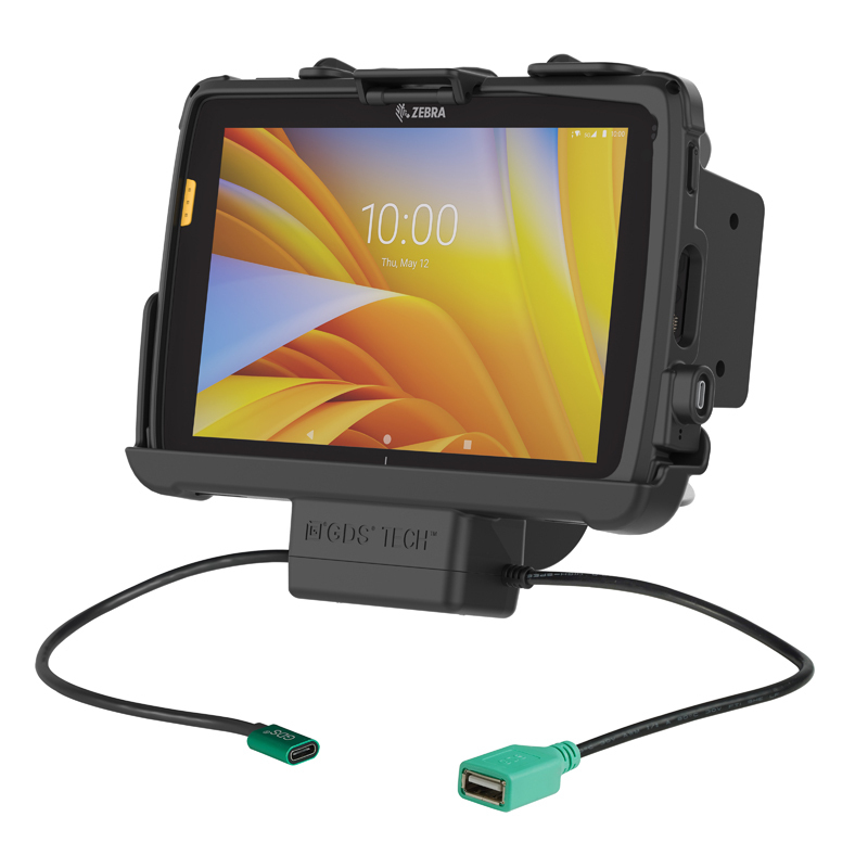 - Powered dock featuring GDS® Technology™ and RAM® EZ-Roll'r™ with data and charging capabilities for the Zebra ET40 & ET45 8" enterprise tablets with IntelliSkin® Next Generation protective sleeve via USB Type-C for power and USB Type A connector for adding a peripheral; MIL-STD 810G Shock and Vibration tested