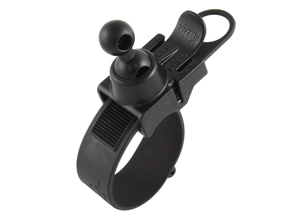 The EZ Strap high strength handlebar rail bike mount consists of the RAM EZ-Strap base connection with a dual friction ball connection to a Garmin 17mm G-Ball. The mount base will fit all handlebar shapes and sizes using the adjustable EZ-Strap. When connected, the G-Ball connects to the socket found on the back of your Garmin GPS cradle.